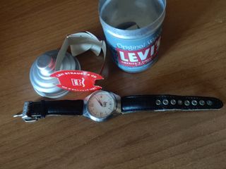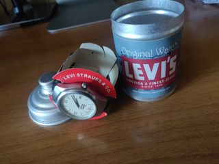 Orologio da uomo Levi's, accessorio del 1993, segni di normale usura e qualche graffio sulla cassa,.va sostituita la batteria, completo di scatola in latta originale, certificato e imballo interno