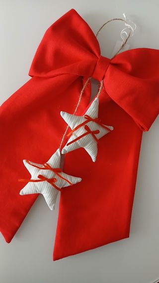Elegante e raffinato fiocco fuoriporta natalizio Realizzato con pregiato tessuto di cotone piquet rosso e decorato con due stelline a righe grigie Realizzato a mano con cura e precisione Misura cm 20x33 circa #fioccofuoriportanatalizio #fuoriporta #Natale #décoration #decorazioninatalizie #shabbydecoration #fioccorosso #reddecoration #casashabby