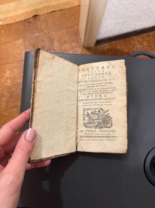 Antico libro Trattato della Confidenza nella Misericordia di Dio del 1780. - Opera di Gio. Giuseppe Languet, Vescovo di Soissons. - Traduzione dall'idioma francese. - Edizione stampata a Venezia. - Con licenza dei superiori e privilegio. edizione Venezia, Pietro Savioni, 1780, confermato nitidamente dal frontespizio. Questa è un’edizione settecentesca autentica, non una ristampa ottocentesca: quindi ha interesse collezionistico.