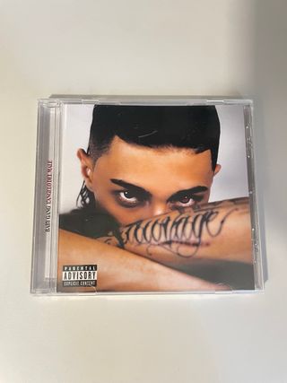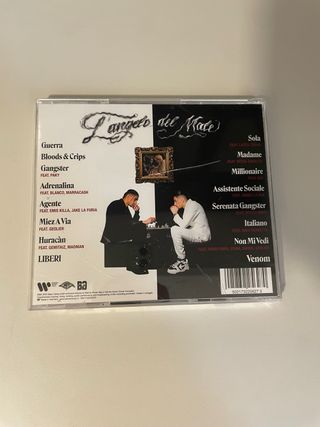 CD l angelo del Male di Baby Gang. 2024 - Copertina con Parental Advisory. - Testo dell'album visibile sul braccio del cantante.