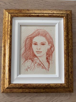 Ritratto a sanguigna su cartoncino, incorniciato. - Tecnica: Sanguigna - Supporto: Cartoncino incollato su faesite - Cornice inclusa