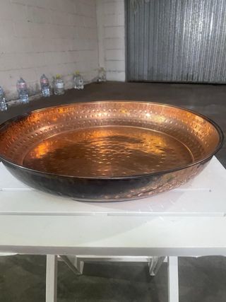 Ampia ciotola decorativa in rame martellato, perfetta come centrotavola o elemento d'arredo. - Materiale: Rame - Finitura: Martellata - Colore: Rame