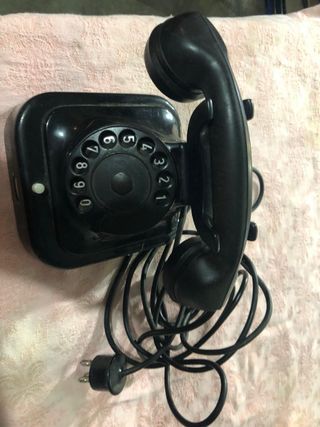 Telefono fisso vintage con combinatore a disco. - Colore nero lucido. - Cavo con spina. - Design classico.