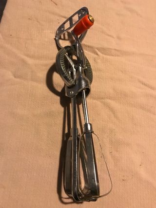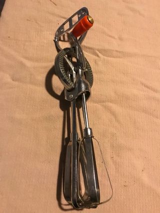 Frusta a mano vintage in metallo con manico arancione. - Design classico. - Meccanismo a ingranaggi. - Ideale per la cucina.