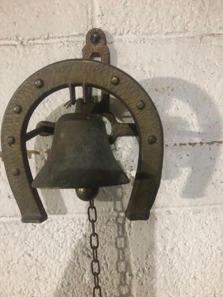Campanella decorativa a forma di ferro di cavallo, realizzata in bronzo. - Design a ferro di cavallo. - Campanella in bronzo. - Catena per il suono.