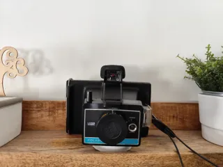 Polaroid Colorpack II Land Camera, un vero pezzo di storia del design americano degli anni Settanta. Perfetta come complemento d'arredo per amanti del modernariato, collezionisti o per allestimenti in stile retro e vetrine. La macchina presenta un'estetica solida e iconica che cattura subito l'attenzione su una libreria o una scrivania. Dettagli dell'oggetto: Design Iconico: Caratterizzata dal classico corpo nero con dettagli blu e scritte "Land Camera" originali. Patina Originale: La macchina presenta naturali segni del tempo e di utilizzo che ne testimoniano l'autenticità e ne aumentano il fascino vintage.