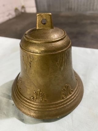 Campana in bronzo con decorazioni. - Materiale: Bronzo - Decorazioni floreali - Anello per appenderla misura 14-12 cm