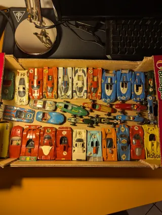 Collezione di modellini Solido vintage. NON ACQUISTARE DA QUESTO ANNUNCIO. - Diverse auto da corsa in miniatura. - Alcuni modelli presentano sponsor come Bosch, Elf, STP. - Numeri visibili sui modellini includono 2, 4, 5, 7, 8, 10, 14, 15, 22, 23, 28, 30, 38, 64.