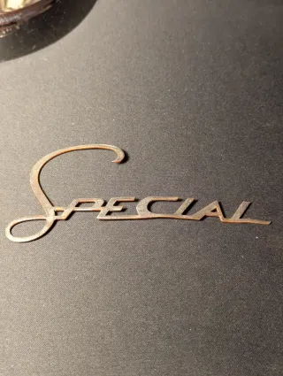 Emblema SPECIAL originale per Lambretta, un pezzo d'epoca. - Design in metallo. - Scritta SPECIAL in corsivo. Lambretta, logo, emblema, stemma, badge, originale, vintage, epoca, storico, classico, collezione, collezionismo, restauro, ricambi, ricambio, scooter, motorino, d’epoca, youngtimer, rarità, autenticità, cromato, metallo, cofano, scudo, carrozzeria, motore, ruote, fanale, manubrio, VespaRival, Li125, Li150, Li200, TV175, TV200, SX150, SX200, GP, Special, Innocenti, anni50, anni60, anni70, motorsport, memorabilia, espositore, raduni, custom, tuning