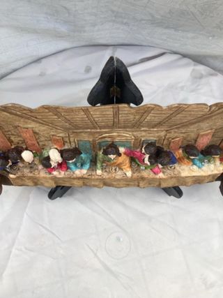 Cenacolo, icona placca in resina. Il soggetto è una pergamena che rappresenta l'ultima cena, personaggi in 3D, completo di cavalletto espositore e provvista di ganci da parete . Dimensioni 48 cm x 24 cm, dipinto a mano. Nuova senza cartellino