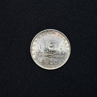 Moneta da 500 Lire della Repubblica Italiana, coniata nel 1959. - Raffigurazione delle Caravelle. - Valore nominale: 500 Lire. - Anno di coniazione: 1959. Materiale: Argento