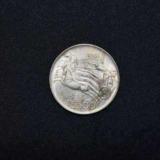 Moneta commemorativa da 500 Lire italiane del 1961, dedicata all'Unità d'Italia. - Diritto: Quadriga. - Rovescio: Ritratto di Italia turrita. - Anno: 1961 - Valore: 500 Lire