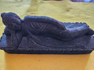 Statua di Buddha in posizione sdraiata, ideale per la meditazione o come elemento decorativo. Lavorata a mano bellissima da collezione o da regalo 🎁 - Materiale: pietra scura. - Design dettagliato.