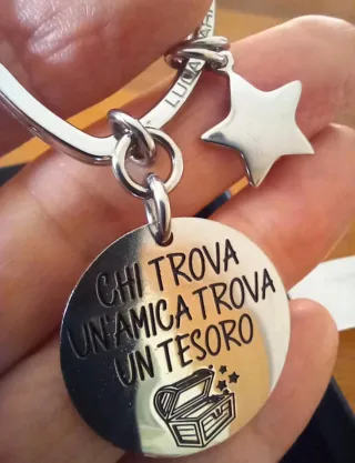 Portachiavi con ciondoli a forma di cuore, stella e cerchio. Completo di scatola - Materiale: acciaio. - Design elegante e moderno.