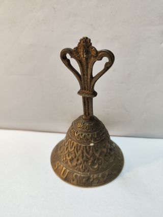 Antica campanella religiosa in metallo con decorazioni. Presenta la scritta Jesus incisa. - Materiale: Metallo - Decorazioni floreali - Scritta Jesus