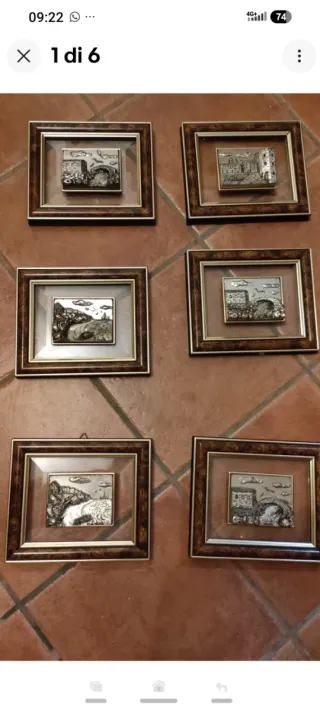 Coppia Di Quadretti Vintage Foglia Argento 925 Man