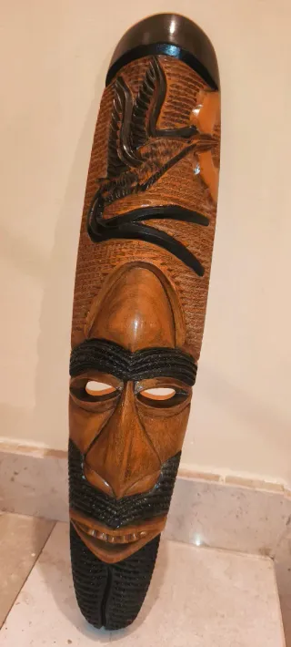 Maschera tribale in legno Tiki intagliata a mano, decorazione per la casa etnica Tiki Bar. Misura in foto.