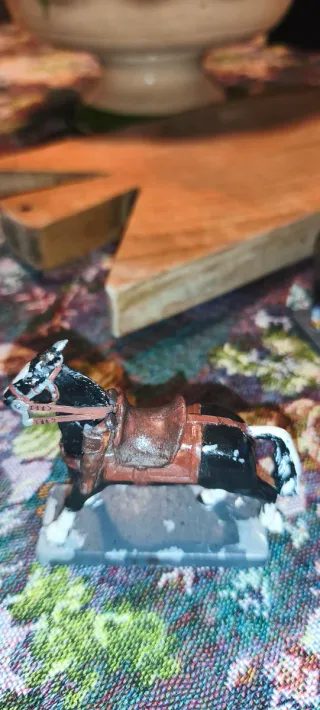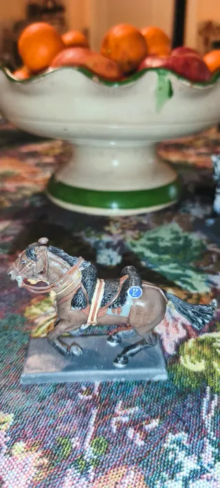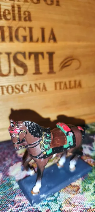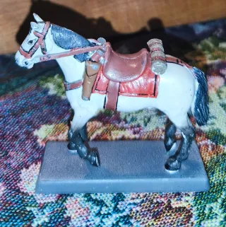 Miniatura vintage di Cavallo da collezione in Metallo marcato British 17^ Lancers UK 1864 Dea by Cassandra decorato a mano con smalto vari colori. Misure altezza cm 9 larghezza cm 10 peso 180 grammi .