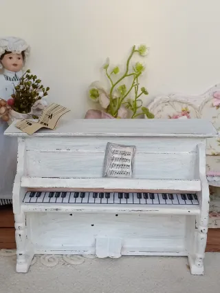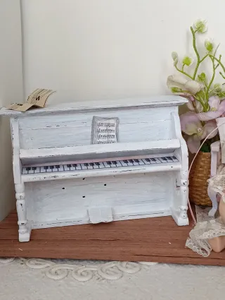 Delizioso pianoforte in miniatura, perfetto per arricchire una casa delle bambole o un diorama. - Design classico bianco. - Dettagli delle tastiere e spartiti inclusi. - Ideale per collezionisti e hobbisti.