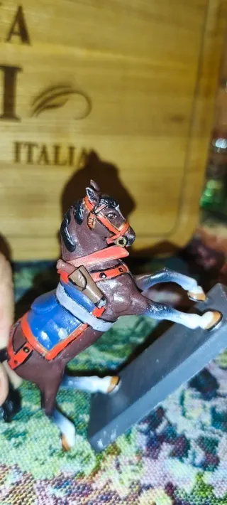 Miniatura vintage di Cavallo da collezione in Metallo marcato Gustavus Adolphus Light CavallaryMan Sweden 1632 Dea By Cassandra, decorato a mano con smalto vari colori. Misure altezza cm 9 larghezza cm 10 peso 180 grammi .
