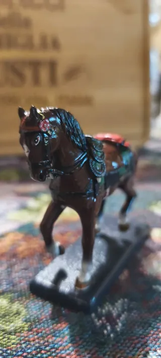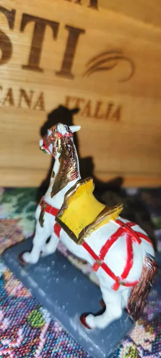 Miniatura vintage di Cavallo da collezione in Metallo marcato Cromwell "Ironside" England 1645 Dea By Cassandra, decorato a mano con smalto vari colori. Misure altezza cm 9 larghezza cm 10 peso 180 grammi .