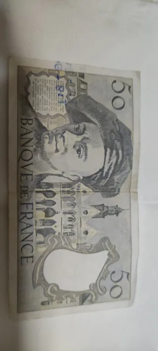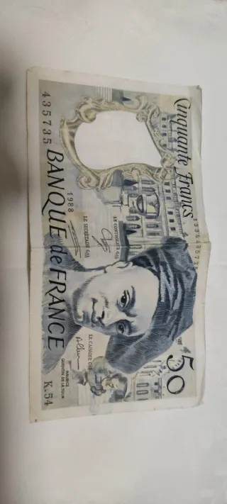 Banconota da collezione della Banque de France. - Valore: 50 Franchi. - Anno di emissione: 1988. - Serie: K.54. - Numeri di serie: 435735 e 1336485735.