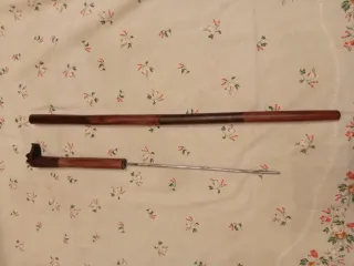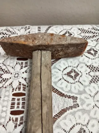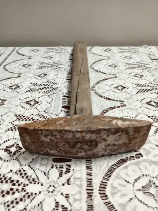 Strumento per la lavorazione di marmo e roccia. Misure: testa 13,5x2 manico 30x3x2 - Testa in metallo. - Manico in legno.