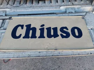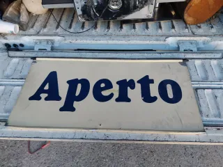 Cartello vintage con la scritta Aperto. - Scritta blu su sfondo chiaro. - Design retrò.