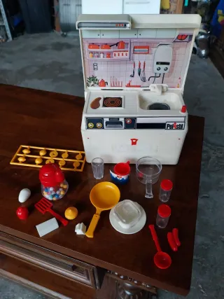 Cucina giocattolo Polistil, un classico per i più piccoli. - Design compatto e pieghevole. - Include accessori come pentole, padelle e stoviglie. - Colore bianco con dettagli colorati.