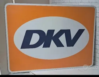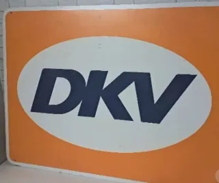 Logo DKV bifacciale in metallo, lamierino serigrafato con logo bifacciale. - Le dimensioni sono 100x75 cm. - qualche segno del tempo - Materiale: metallo - Bifacciale