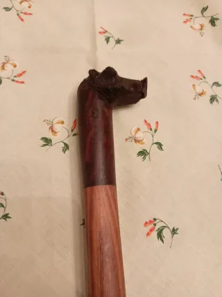 Bellissimo bastone africano con decorazioni. Reso "animato". Utilissimo da passeggio e da difesa. - Realizzato in legno scuro. - Manico intagliato. Disponibile con impugnatura a forma di testa di facocero Prezzo trattabile