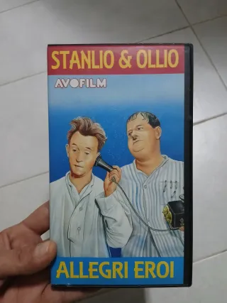 Videocassetta vintage degli anni '80 con Stanlio & Ollio - Allegri Eroi. Un pezzo da collezione per gli amanti del cinema. - Titolo: Allegri Eroi - Artisti: Stanlio & Ollio - Etichetta: AVOFILM - Anno di produzione: anni '80