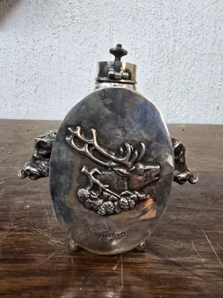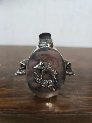 Elegante profumiere in argento, di origine russa, con una raffinata decorazione a rilievo raffigurante un cervo e un cinghiale. Dimensioni: 10x10 Timbrato. Condizioni come da foto. Per maggiori informazioni contattatemi.