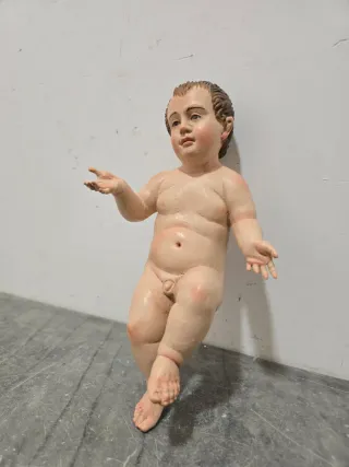 Bambinello in legno e occhi di cristallo, un pezzo d'epoca con un fascino unico. Origine italiana, epoca novecento. Manifattura eccezionale. Dimensioni: 25cm Condizioni come da foto. Per maggiori informazioni contattatemi.