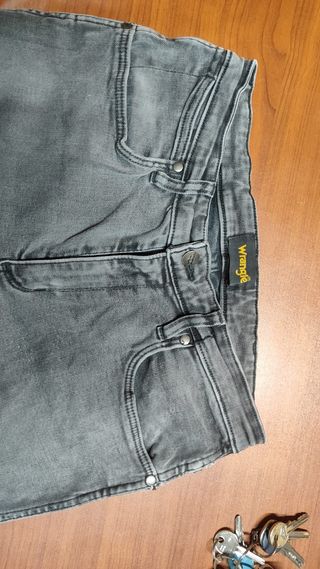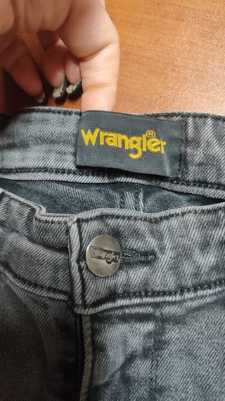Jeans vintage Wrangler in denim grigio. - Logo Wrangler sul taschino posteriore. - Chiusura con zip e bottone. - Dettagli con cuciture a contrasto.