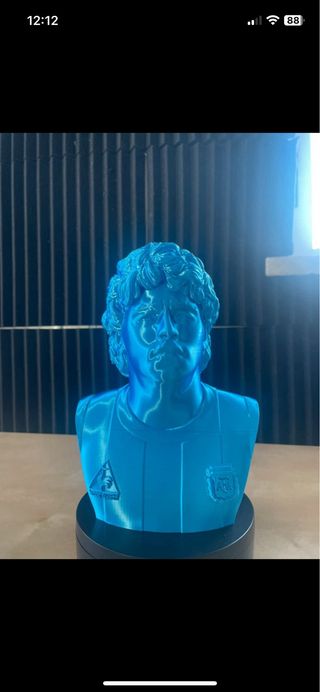 Busto decorativo di Diego Armando Maradona. - Colore blu brillante. - Dettagli accurati del volto e della maglia.