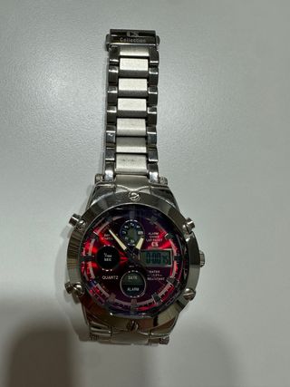 Orologio da polso CS Collection con cinturino in metallo. - Quadrante rosso con dettagli. - Funzione cronografo. - Resistente all'acqua.