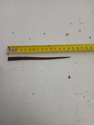 Chiodo antico, forgiato a mano. Pz 29 prezzo cadauno - Materiale metallico scuro.in - Forma affusolata con testa piatta.