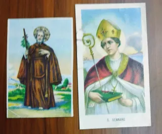 Due santini religiosi, uno raffigurante San Gennaro e l'altro San Ciro.