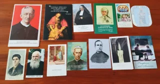 Lotto di 12 santini e un adesivo con immagini sacre e ritratti di figure ecclesiastiche. Pieghevoli e immagini di varie dimensioni ed epoche diverse