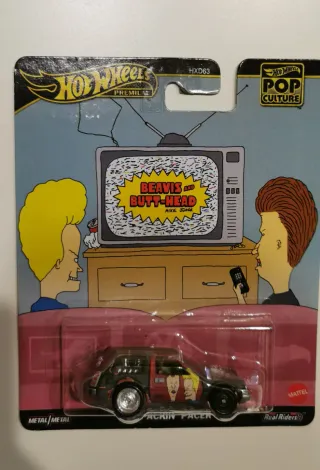Modellino Hot Wheels della serie Pop Culture dedicato a Beavis and Butt-Head. - Serie: Pop Culture - Personaggi: Beavis and Butt-Head - Modello: Ackin Pacer - Materiali: Metallo/Metallo - Ruote: Real Riders