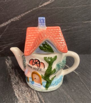 Deliziosa mini teiera a forma di cottage, perfetta per collezionisti. Un pezzo unico che aggiunge un tocco di fascino. - Design a forma di casetta Anna House. - Dettagli colorati e curati. - Ideale come oggetto decorativo.