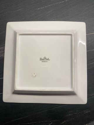 Elegante piattino vintage con decoro floreale in stile Blue Canton. Perfetto per aggiungere un tocco di classe alla tua tavola. - Motivo floreale blu e arancione. - Bordo decorato con motivi geometrici blu e gialli. - Design classico e raffinato.