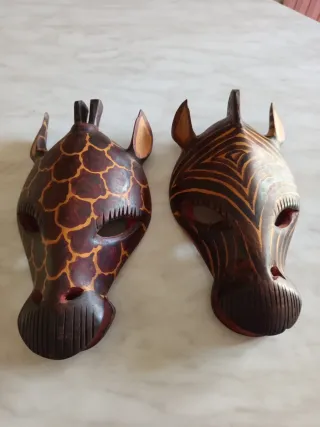Coppia Maschere Africane Legno Giraffa Zebra.