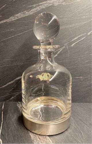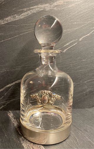 Elegante caraffa in cristallo con dettagli in argento 925. Segni sulla parte d’argento del fondo (vedi foto). - Design raffinato. - Base e decorazione in argento 925. - Tappo sferico in cristallo.