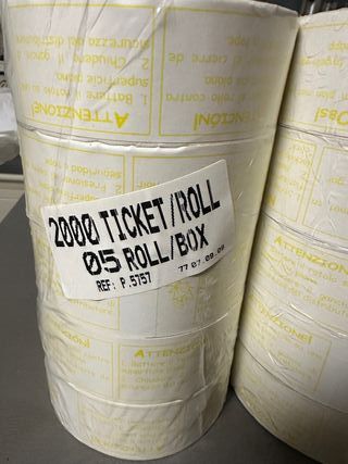 Vendita di 3 KIT COMPLETI di ticket numerati, come visibile in foto. Ogni kit è composto da 5 rotoli, ciascuno da 2000 biglietti. Totale complessivo: 3 confezioni complete 15 rotoli totali 30.000 ticket numerati Biglietti pretagliati con numerazione progressiva, ideali per eventi, sagre, lotterie, guardaroba, fiere o gestione ingressi. Prodotto nuovo e sigillato, mai utilizzato. Vendita in blocco di tutte e 3 le confezioni (non vendo singoli kit o rotoli). Riferimento prodotto: P.5757. Articolo come da immagini.