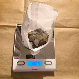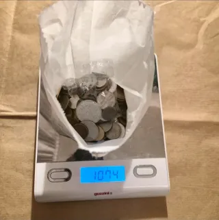 Lotto misto di monete provenienti da tutto il mondo dal peso di 1085 grammi. condizioni come in foto. Nella penultima foto sono mostrate le monete contenute nella bustina.