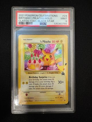 Carta Birthday Pikachu del set 2021 Pokemon Celebrations. - Edizione Classic Coll-Black Star. - Grado PSA 9 Mint. - Holo Foil.
