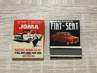 Due scatole di fiammiferi antiche, una di Auto-Lavado Joma e l'altra di Cafetería Fiat-Seat. - ✅ Scatolina Auto-Lavado Joma con design di auto e persona. - ✅ Scatolina Cafetería Fiat-Seat con immagine di auto. - ✅ Perfetto stato - ✅ Includono informazioni di contatto e ubicazione. - ⚠️ Prezzo per le due scatole insieme - 📦 Spedizione rapida e ben protetta - 🔁 Non perderti il mio profilo!!