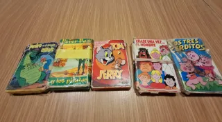 Collezione di mazzi di carte antiche con illustrazioni di personaggi classici. -10 euro ciascuno. - Pedro e il drago Elliot - Peter Pan e i pirati - Tom e Jerry - C'era una volta... l'uomo - I tre porcellini - Alcune scatole sono un po' deteriorate ma le carte sono perfette.
